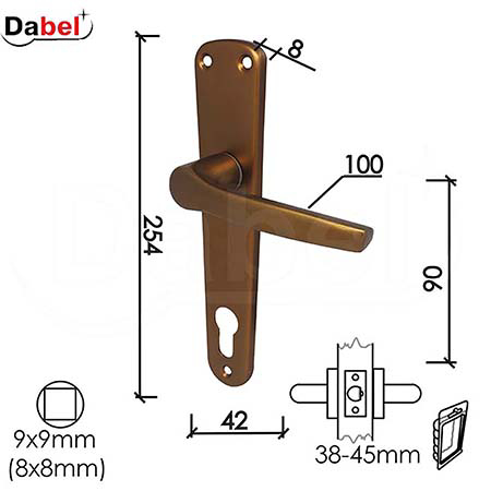 Kvaka sa štitom DABEL DOLČE-S izrađena je od aluminijuma sa F4 bronzanom završnom obradom, koja pruža elegantan izgled i otpornost na habanje.