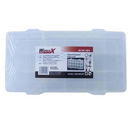 Plastična kutija-klaser W-SK 309 dimenzija 230 x 125 x 35 mm namenjena je za preciznu i preglednu organizaciju sitnog pribora i opreme. Zahvaljujući većem broju manjih pregrada, idealna je za kućne radionice, ribolovce, krojače, servisere i hobiste.