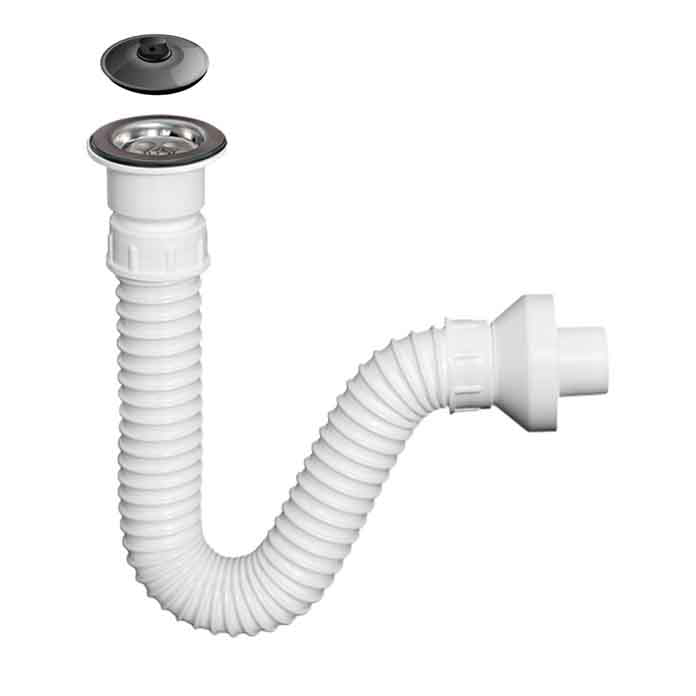 🛁 Fleksibilni sifon za lavabo ⚪ Inox poklopac sa čepom 📏 PVC cev fi 40 mm 🛠️ Ulivno grlo sa rešetkom i gumicom 🔄 Adapter 40 mm i 29/32 mm 💎 Moderan i funkcionalan dizajn