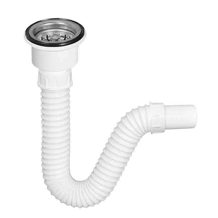 🧼 Sifon za jednodelnu sudoperu – KRUTI 1/1 💧 Vodeni zaptivač visine 34 mm 🔗 Gibljivi odvod (2x300 mm) – bez zadržavanja vode 🔁 Priključak za preliv i sudomašinu 🔒 Konusni spoj i zaptivka – sigurno zaptivanje 📏 Dimenzije: 520x190x70 mm ⚖️ Težina: 410 g 🧪 Materijali: AISI 304, PP, PVC 📄 Standard: SRPS EN 274 ⭕ Rešetka sifona Ø65 mm