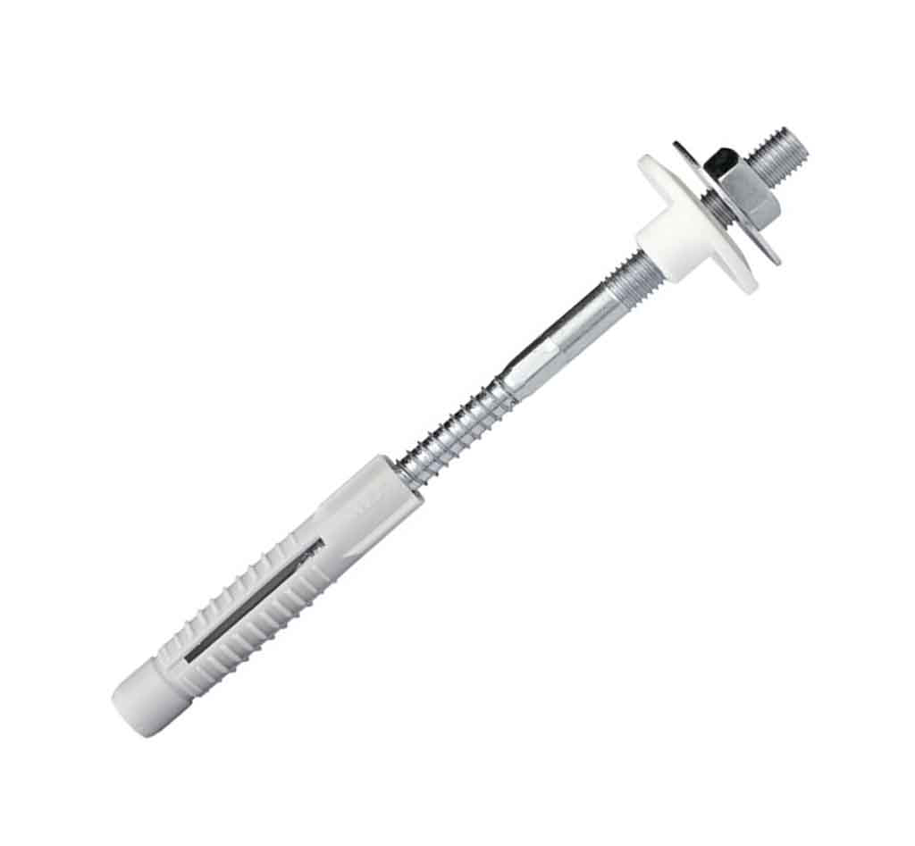 Komplet za pričvršćivanje lavaboa CELO F10x140, namenjen za sigurnu montažu umivaonika/lavaboa na zid. Plastična čaura (sleeve) štiti keramiku od oštećenja prilikom zatezanja, što smanjuje rizik od pucanja.